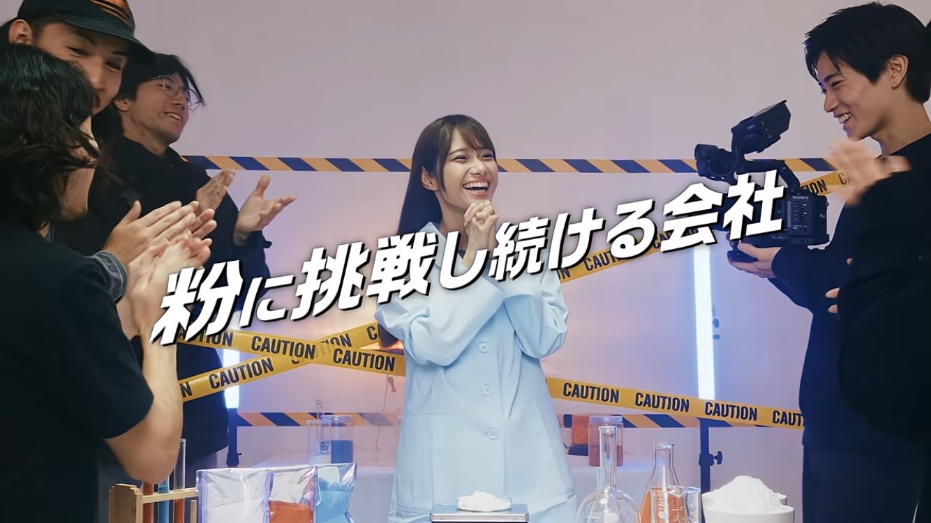 静岡県沼津市出身の齋藤ザーラチャヒヨニさん(fishbowl)が粉の実験に挑戦し、その姿が会社としての粉に向き合っていく姿と重なるイメージで企画設計をしました。
